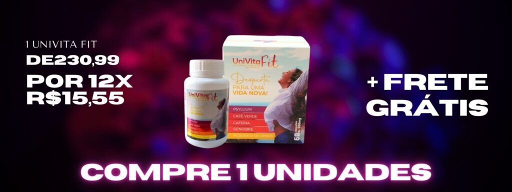 Se você está começando do zero nesse universo, relaxe! UNIVITA FIT® está aqui para ajudar. Todo o processo, desde o início até os resultados, é simples e sem exageros. Basta tomar 2 cápsulas por dia do suplemento alimentar 100% natural, e os resultados começarão a aparecer em até 30 dias.